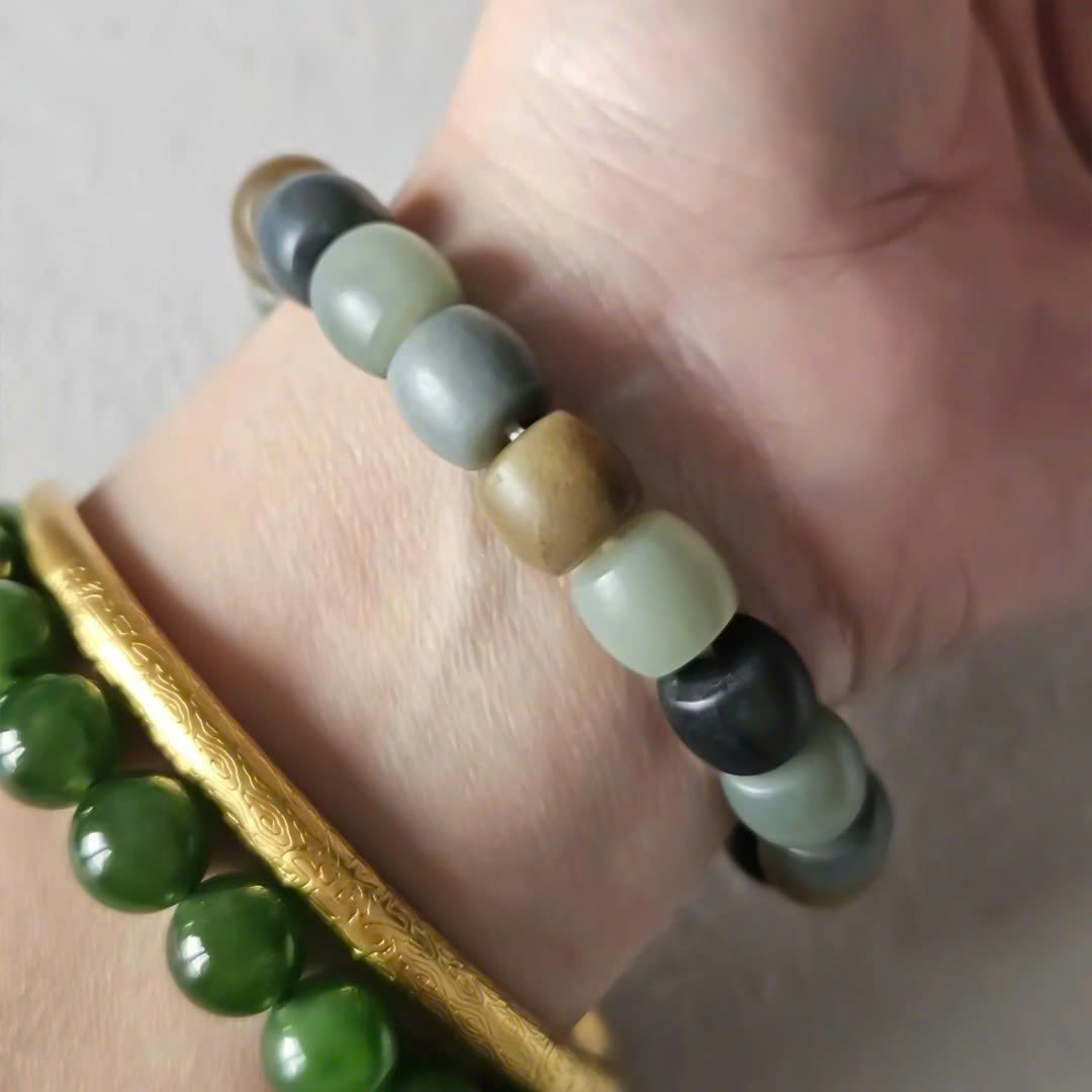 - Chất liệu: Ngọc bích Hetian hạt bầu 10mm